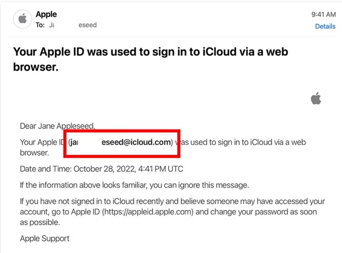 您還可以檢查舊的 Apple 收據、賬單電子郵件或 Apple 的任何官方消息,以找出與您的帳戶關聯的確切 Apple ID。簡而言之,請仔細檢查您是否逐字輸入真實的 Apple ID 電子郵件。