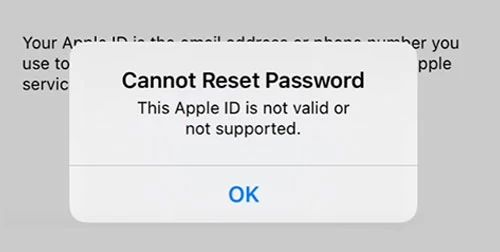 此類情況可能會混淆蘋果的驗證系統。它不會拋出詳細的同步錯誤,而是簡單地將您的 Apple ID 標記為“無效或不受支持”。
