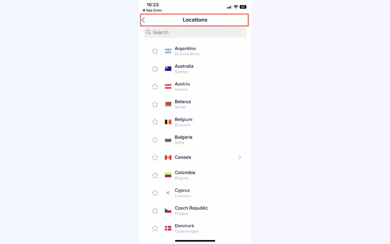 - 選擇首選服務器位置(VeePN 提供對 60 個國家/地區 89 個位置的訪問權限)以更改您的 IP 地址。