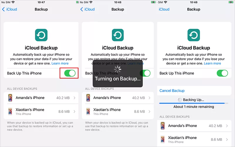 步驟2:打開iCloud備份並點擊現在備份。然後 等到備份為止