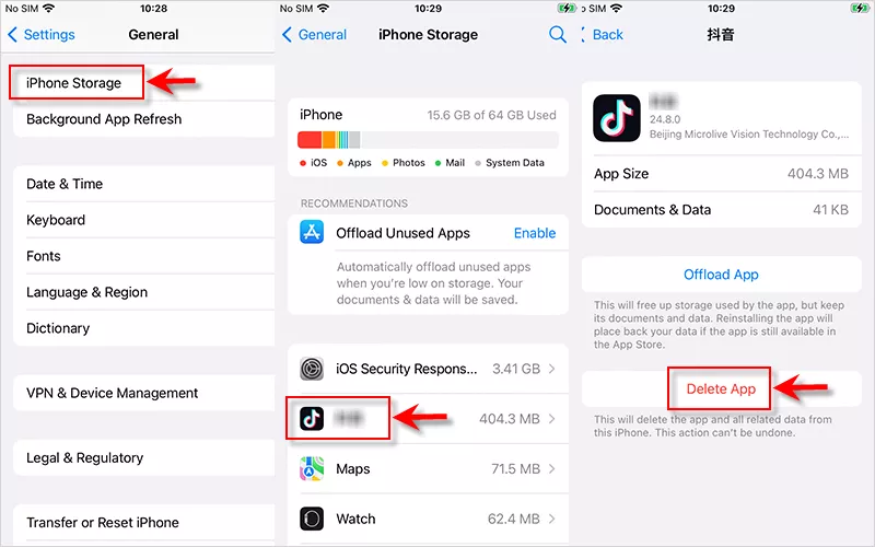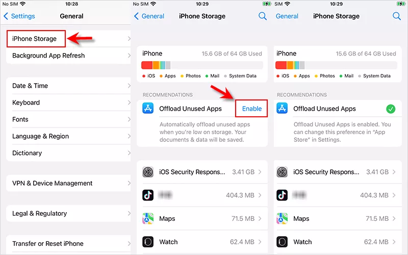要修復“ iPhone說沒有足夠的存儲空間但存在”問題,您也可以嘗試啟用未使用的卸載