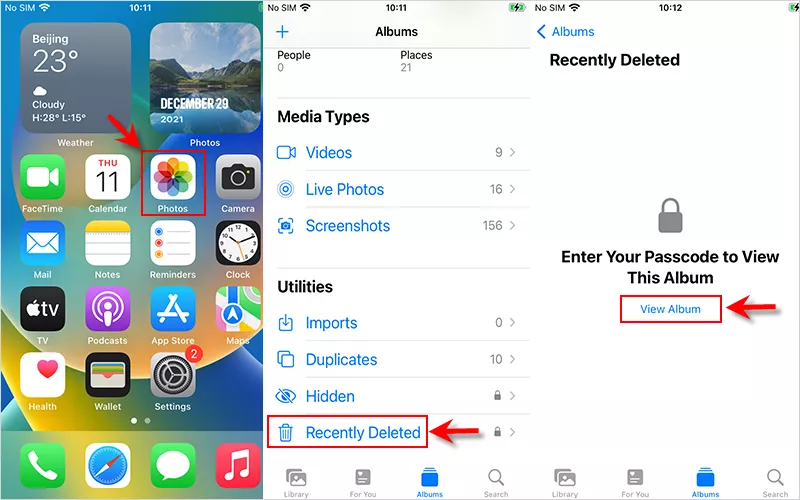 步驟1:轉到iPhone Photos應用並選擇專輯。然後向下滾動並點擊最近