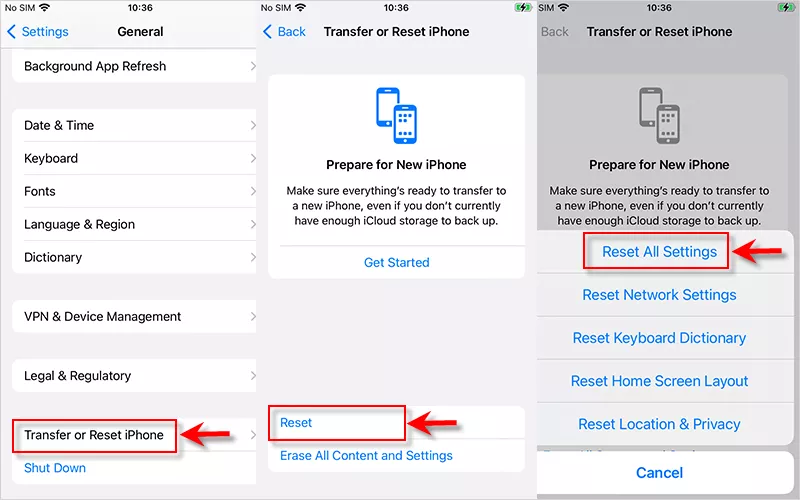 如果問題是由iPhone設置故障引起的,您可以嘗試將iPhone上的所有設置還原為