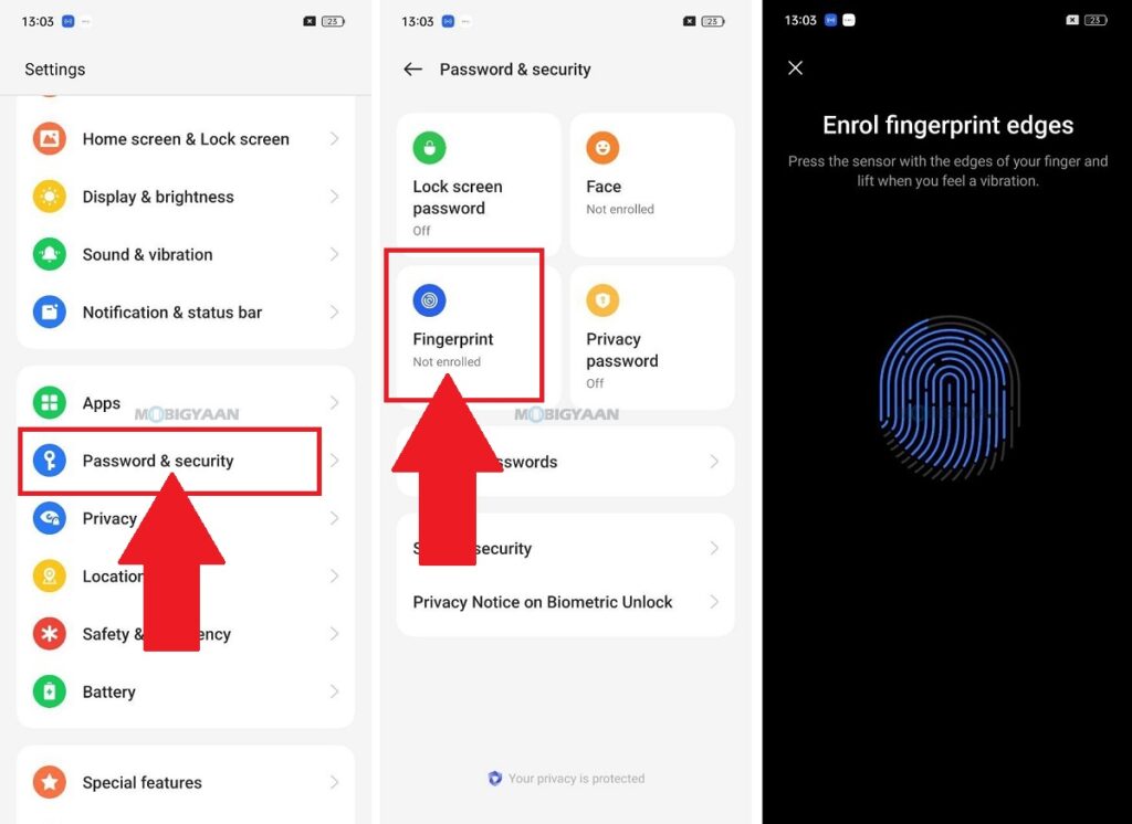 筆記:如果您尚未註冊任何指紋,則此功能將無法使用。註冊您的指紋,請訪問設置->密碼和安全->添加指紋在手機上添加您的指紋。