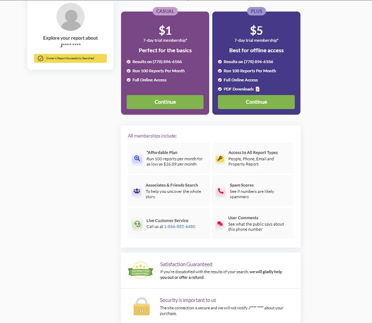- 您將收到一份報告,其中包含與電話號碼相關的信息。該報告可能包括呼叫者的全名、年齡、地址、家庭信息運營商詳細信息。