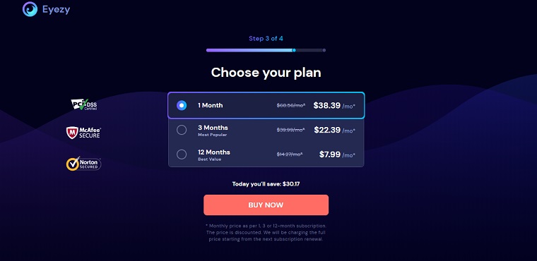 - 登錄後,購買訂閱計劃並使用電話號碼跟踪手機位置。這是 Eyezy.com 的訂閱計劃。