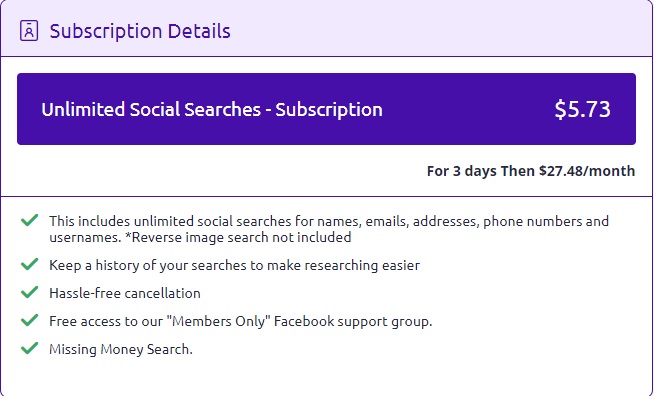 | 已驗證 | 詳細的背景調查。 | 一周試用 1 美元,1 個月 – 26.89 美元,3 個月 – 52.44 美元。 | |