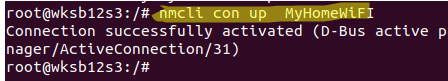 # nmcli con up WOSHubWiFi