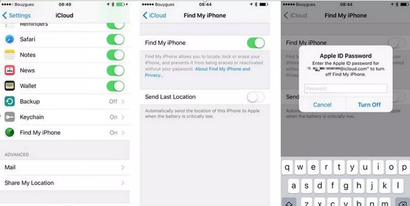 步驟3:切換找到我的iPhone,然後點擊“關閉”。然後,輸入您的iCloud密碼以完成。