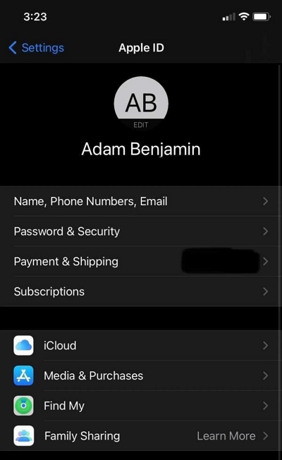 步驟1:打開“設置”應用程序,然後點擊您的“名稱”橫幅。
