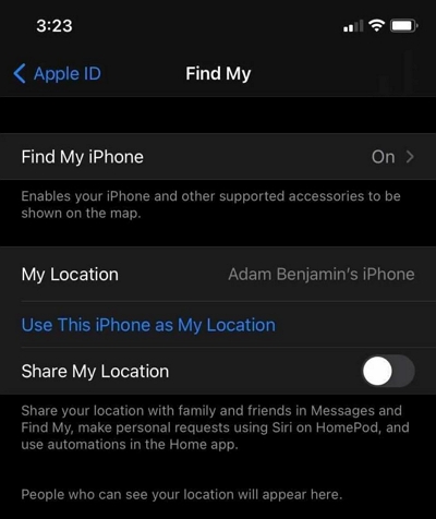 步驟4:點擊“使用此iPhone作為我的位置”。現在,您可以出去,而無需通知您的父母您關閉找到我的iPhone。