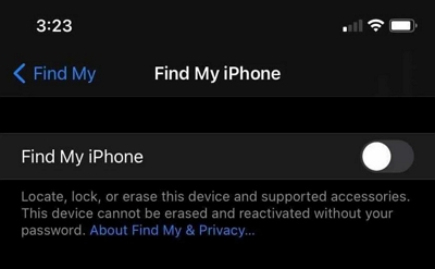 步驟4:關閉“查找我的iPhone”旁邊的切換。