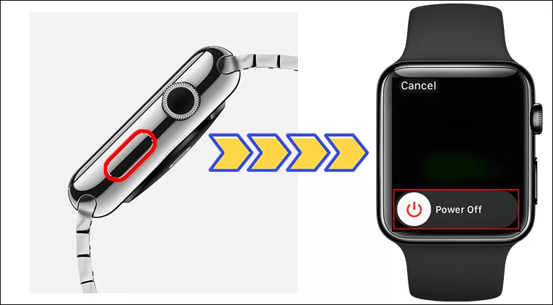 步驟一:按住側面按鈕,直到出現“關閉電源”滑塊。點按可關閉 Apple Watch。
