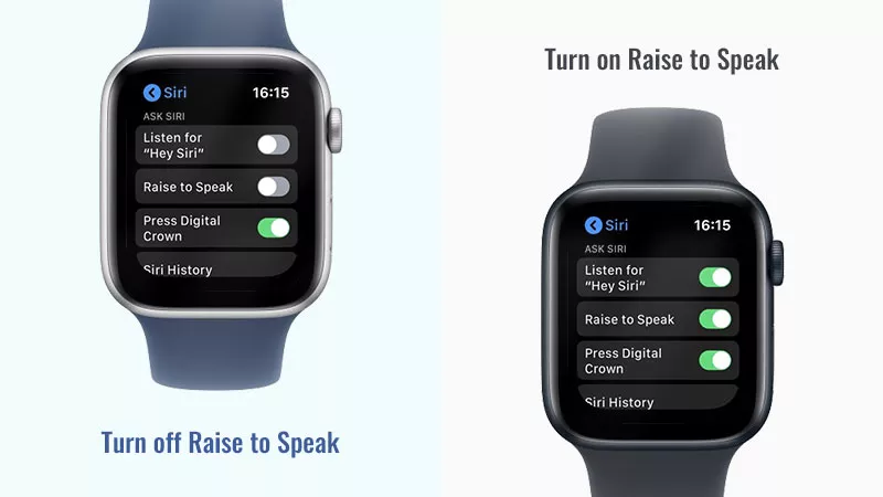 方式 1:啟用 Hey Siri 並靠近 Apple Watch 說話