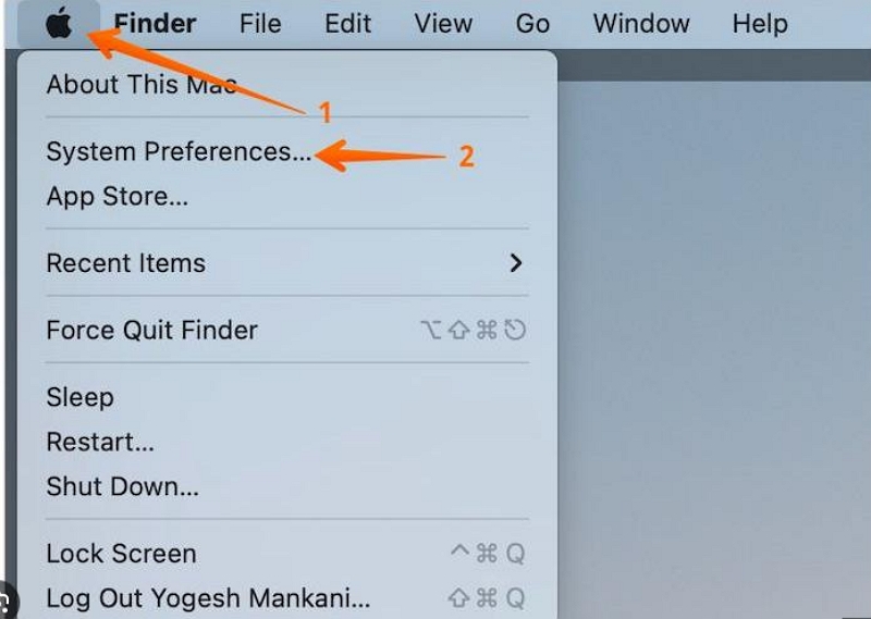 步驟一:單擊 Mac 上的“Apple 菜單”,然後選擇“系統偏好設置”。