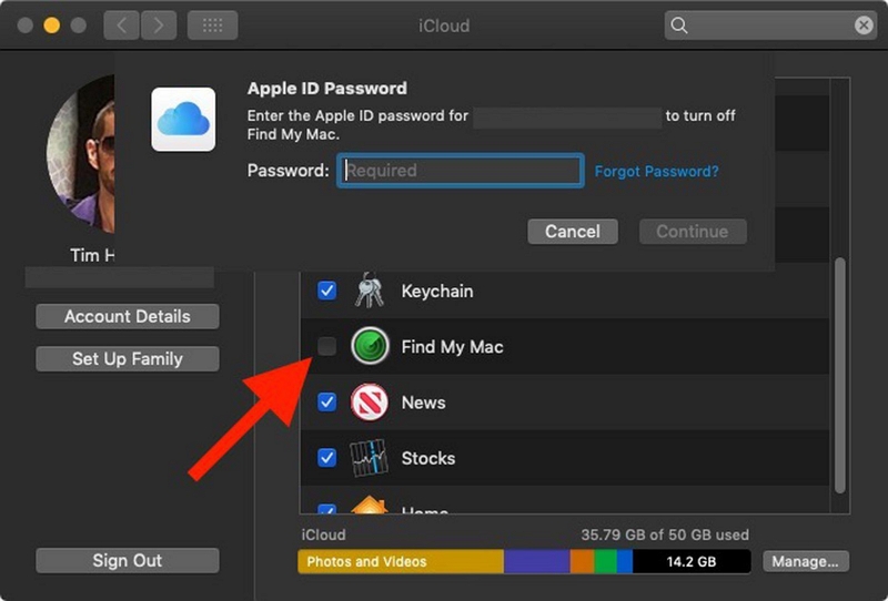 步驟3:導航到“查找我的 Mac”並取消選擇它。最終,您的 MacBook 上的激活鎖將被刪除。