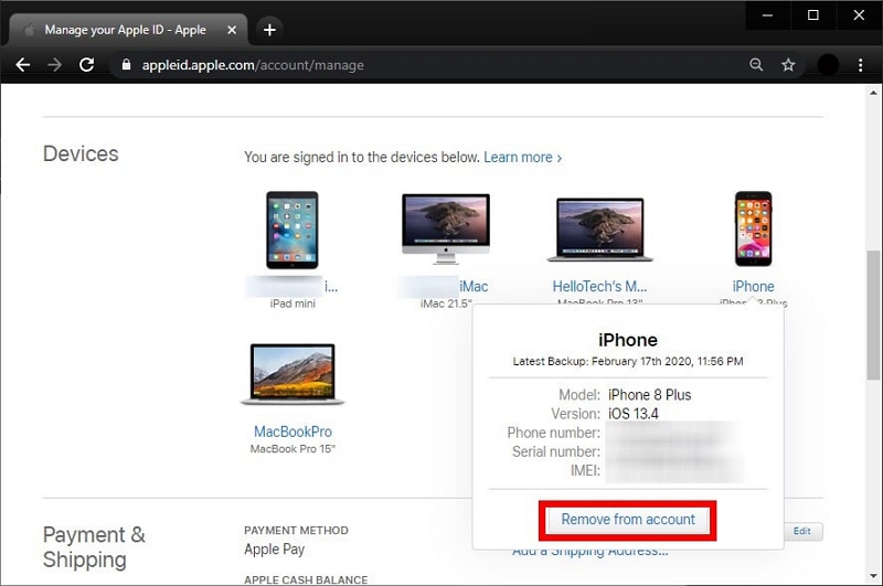 步驟3:單擊“從帳戶中刪除”以擦除設備並禁用激活鎖。