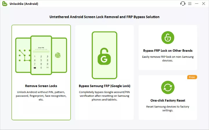 - Android FRP 繞過問題:如果您在 Android 設備上繞過 Google FRP 鎖時遇到困難,請利用 UnlockGo 的“解鎖屏幕鎖定”功能執行恢復出廠設置。接下來,仔細按照屏幕上的提示完成 FRP 旁路。