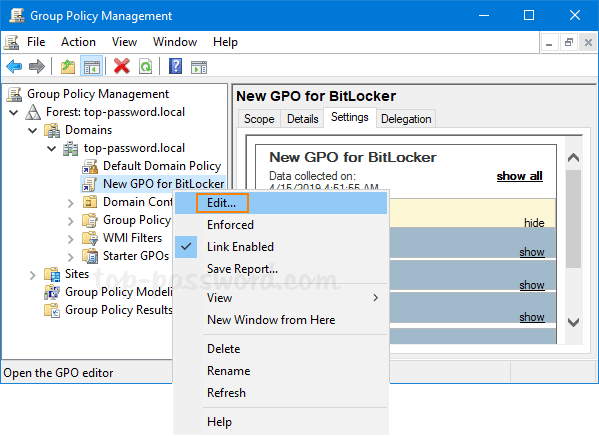 - 右鍵單擊左窗格中新創建的GPO,然後選擇編輯。