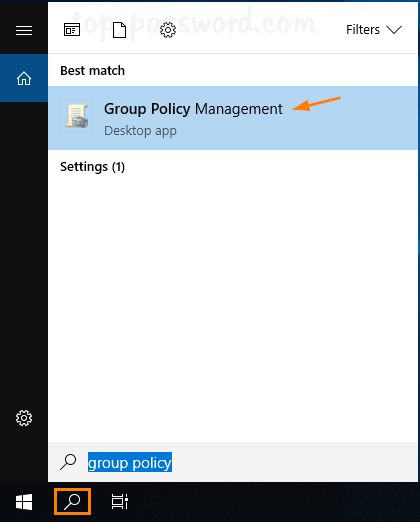 - 單擊任務欄中的搜索圖標,然後鍵入“小組政策“。然後可以單擊小組政策管理啟動它。
