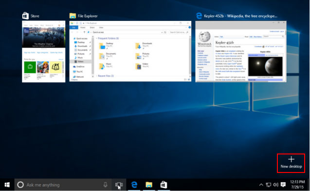虛擬桌面可以幫助您擴展和組織桌面。要創建新桌面,請打開任務視圖(Win + Tab),然後選擇新桌面靠近右下角。