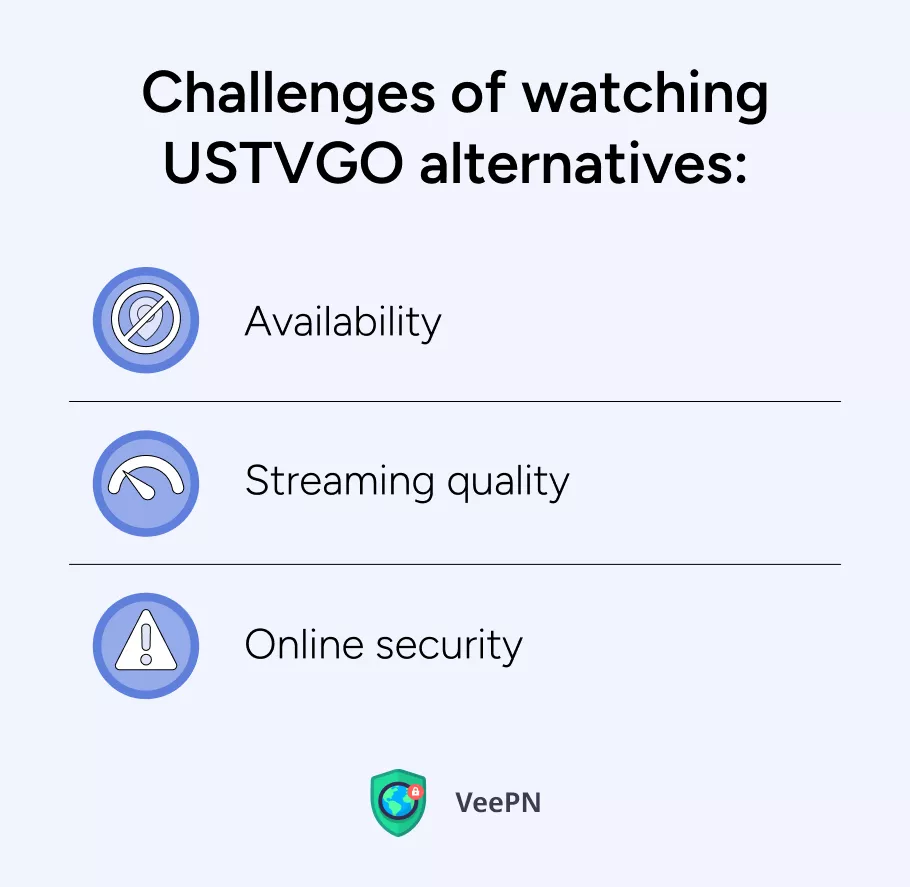 儘管有很多 USTVGO 替代網站,但您可能會遇到一些阻礙您享受直播電視流媒體的挑戰: