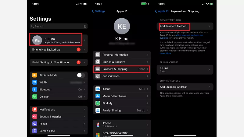 步驟2:然後點擊付款及運輸並輸入 Apple ID 密碼以登錄您的