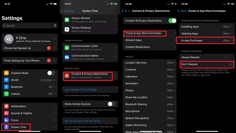 在 iPhone 上激活“屏幕使用時間”後,您可以設置 iTunes 和 App Store 購買