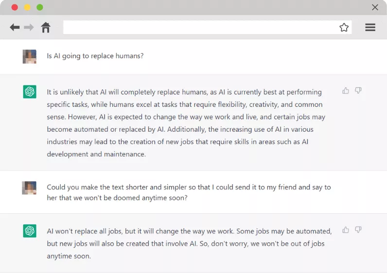 使用 ChatGPT 就像與一位知識淵博的朋友交談。您甚至可以要求它以更簡單或更對話的語氣解釋事物。
