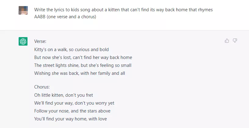 ChatGPT 可用於幫助創作音樂、歌詞和詩歌。它甚至可以幫助創建AI藝術提示。描述您的提示,提供盡可能多的細節,然後讓機器人發揮它的魔力。