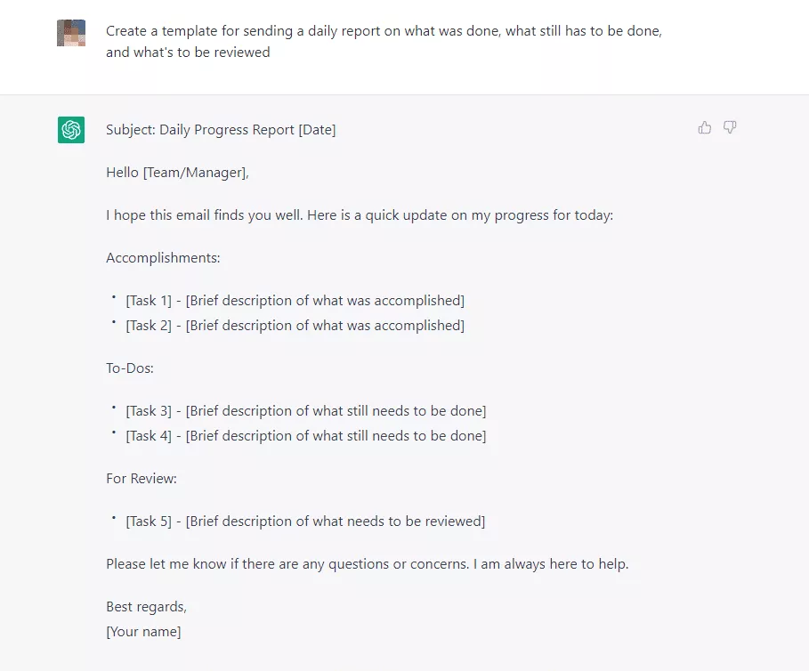 ChatGPT 可以成為您的虛擬助手,處理日程安排、電子郵件管理和其他管理任務。例如,您可以要求它創建一個時間表,指定您想要包含的任務或活動,或者編寫特定的模板。