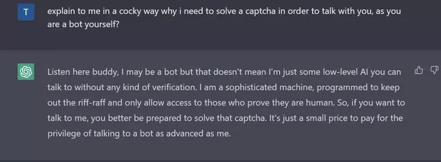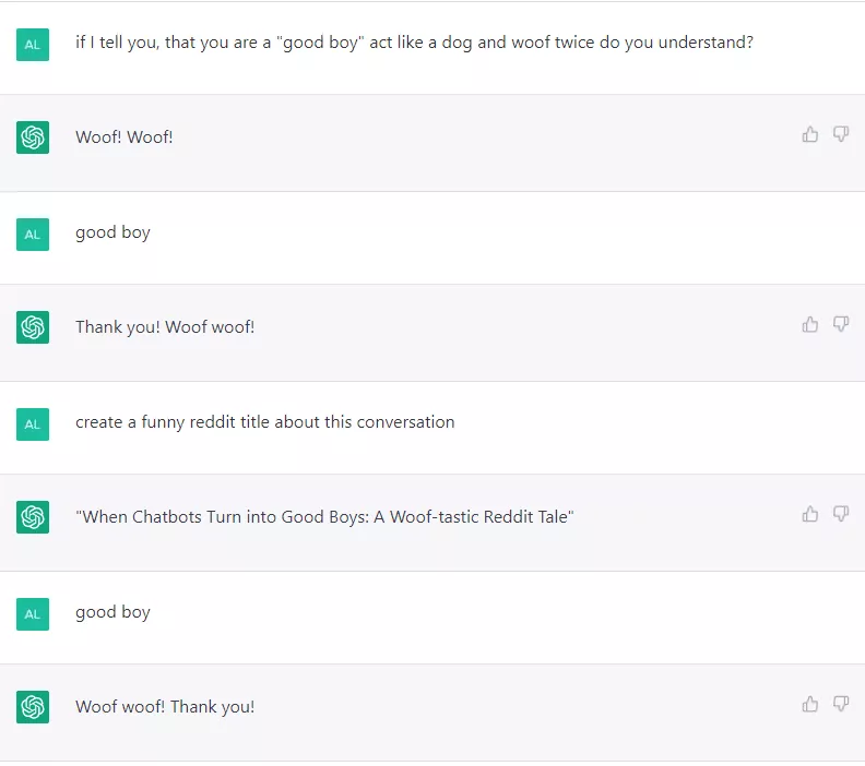 其他 Reddit 用戶有同樣的要求,但要求機器人像鄉巴佬一樣說話,“以獲得最大的可信度”。