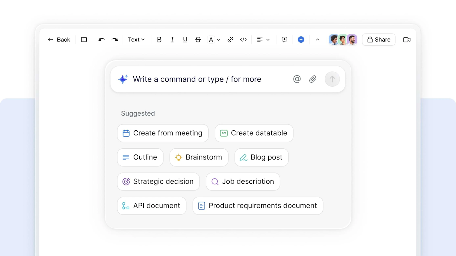 是的,基本計劃允許您創建文檔並共享最多 10 個協作文檔。付費計劃可解鎖無限量的個人文檔和 AI Companion。