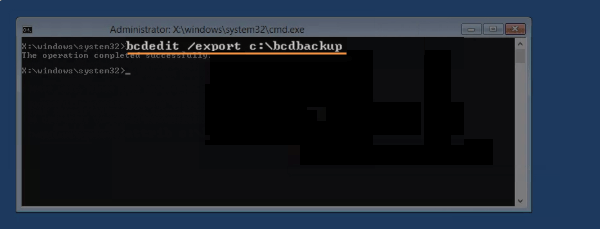 bcdedit 命令用於將 BCD 存儲導出為文件:BCD_Backup。
