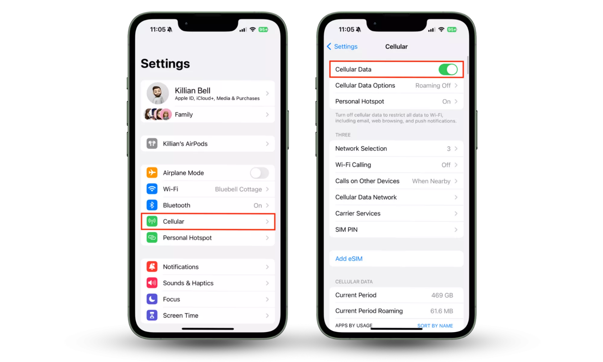 步驟 2-4:轉至設置 > 蜂窩網絡 > 禁用它。