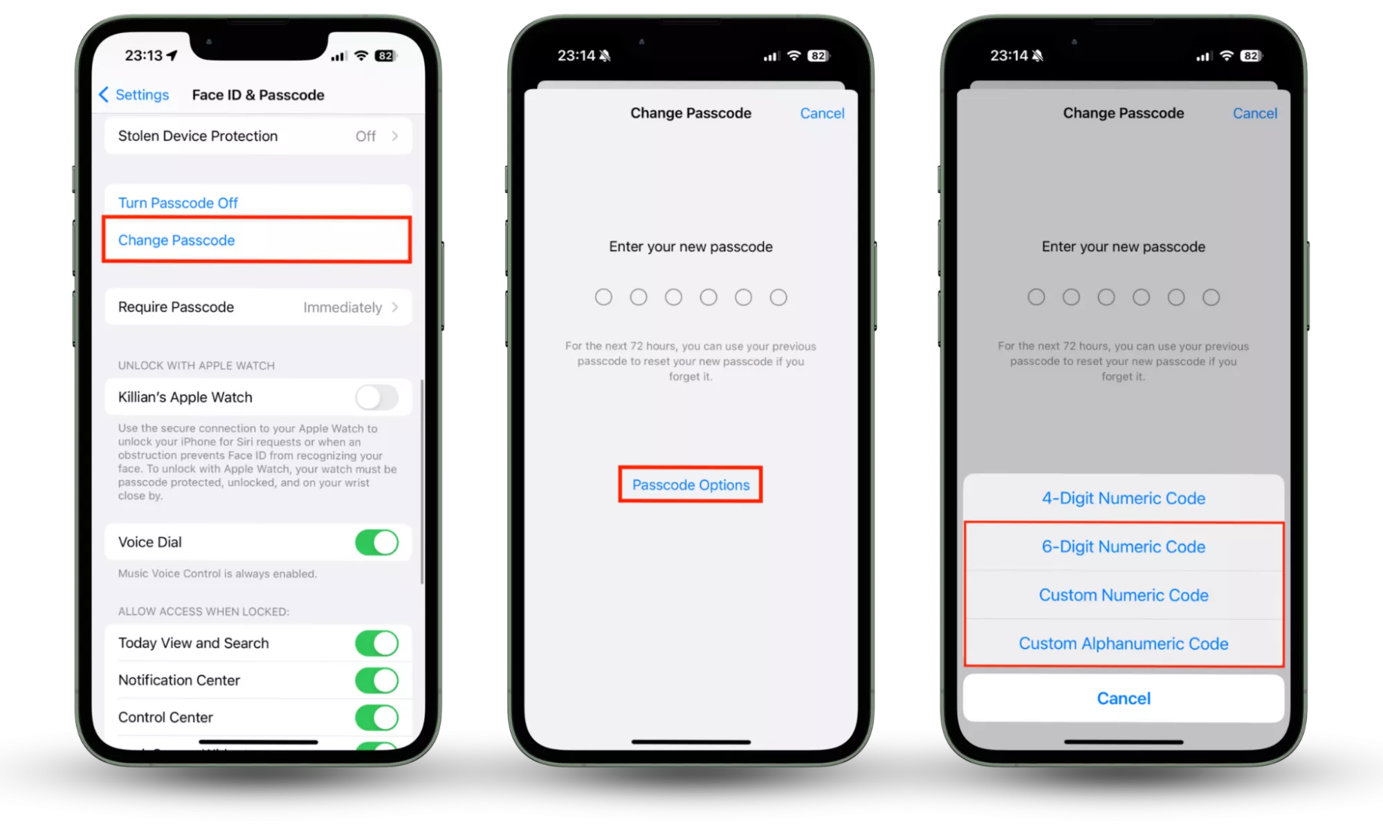 步驟 1-4:前往“設置”>“面容 ID 和密碼”,然後更改密碼。