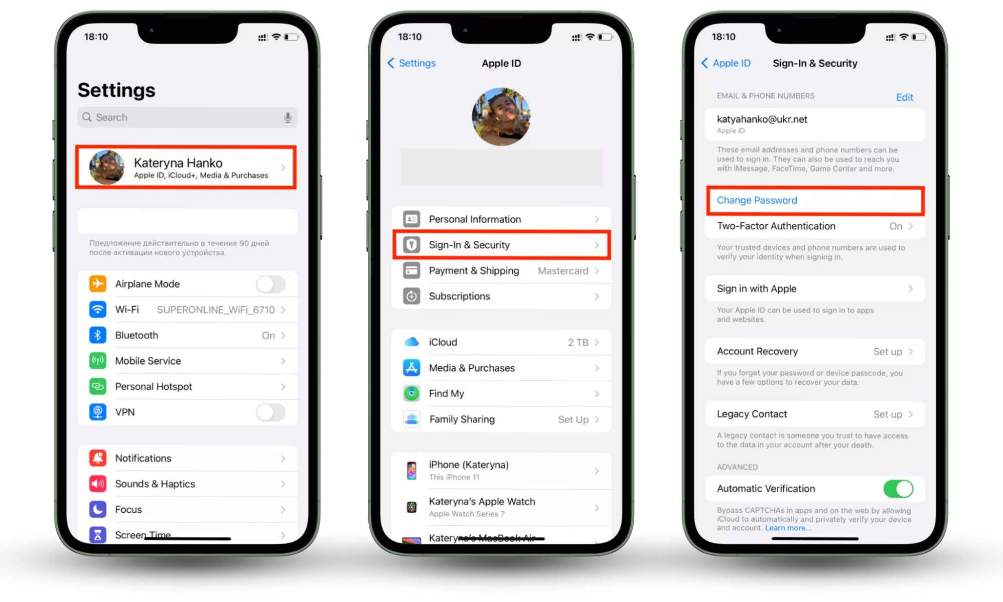 在這種情況下,檢查與 iPhone 關聯的所有帳戶,然後更改每個帳戶的密碼 — 如果 2FA 尚未激活,請同時啟用它。這是一個耗時的過程,但對於保護您的在線世界至關重要。
