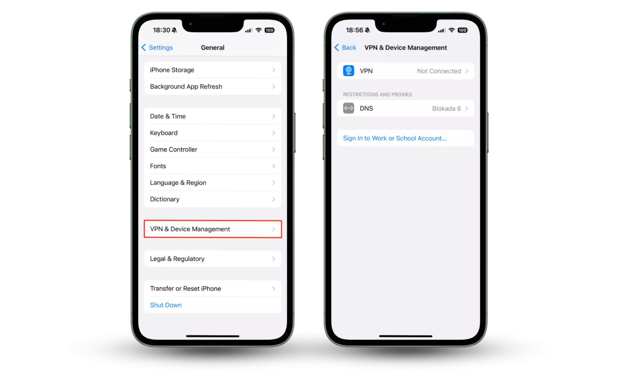 步驟 1-4:在“設置”中,轉到“常規”,點擊“VPN 和設備管理”,然後刪除無法識別的配置文件。
