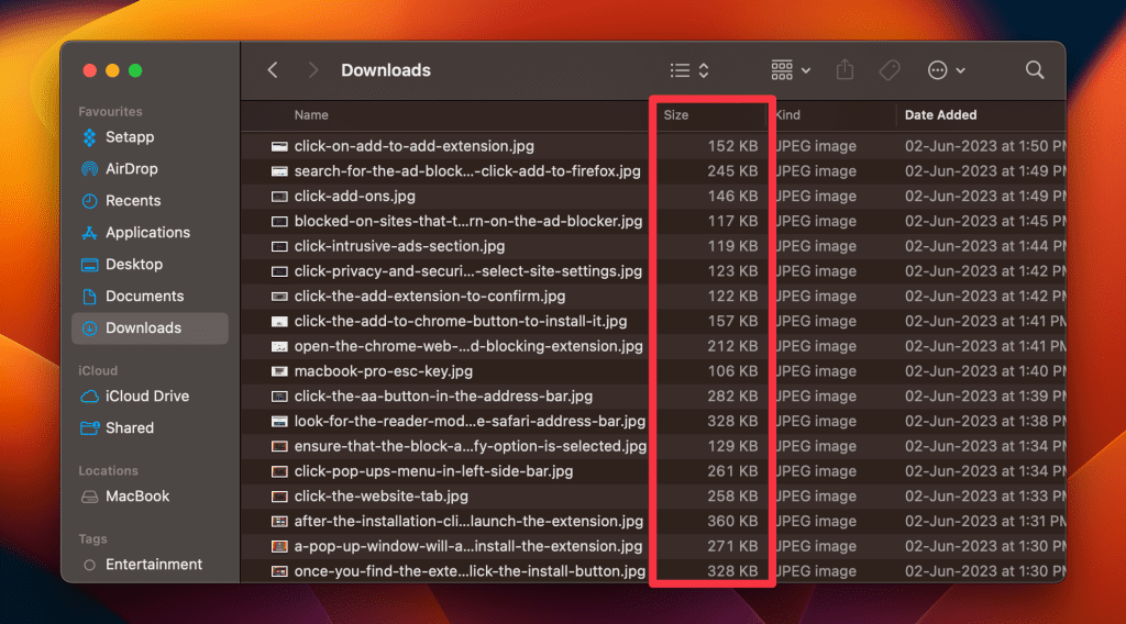 - 單擊尺寸列按降序對文件進行排序,從而更容易識別最大的文件。