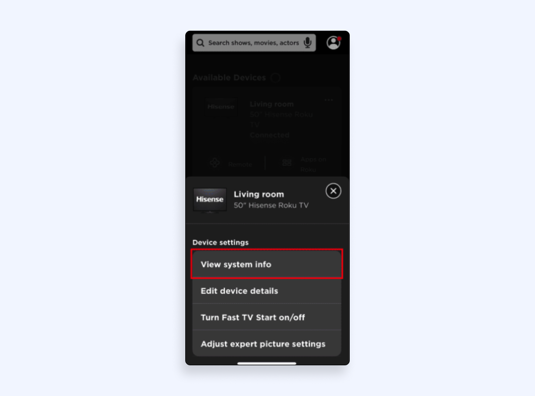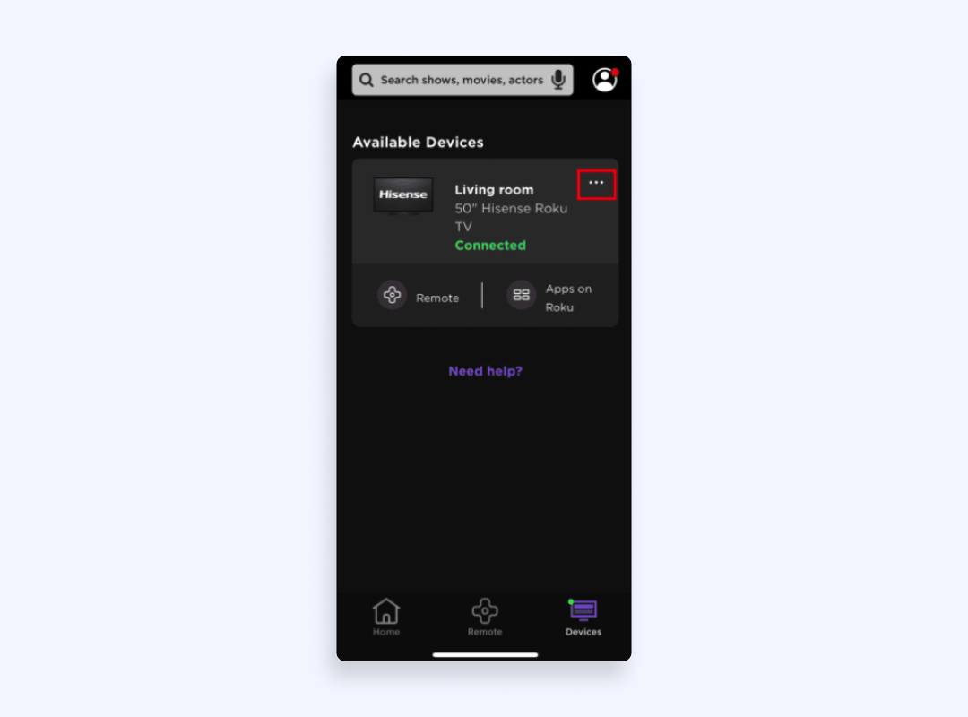 2. 點擊所選 RokuTV 旁邊的三個點。