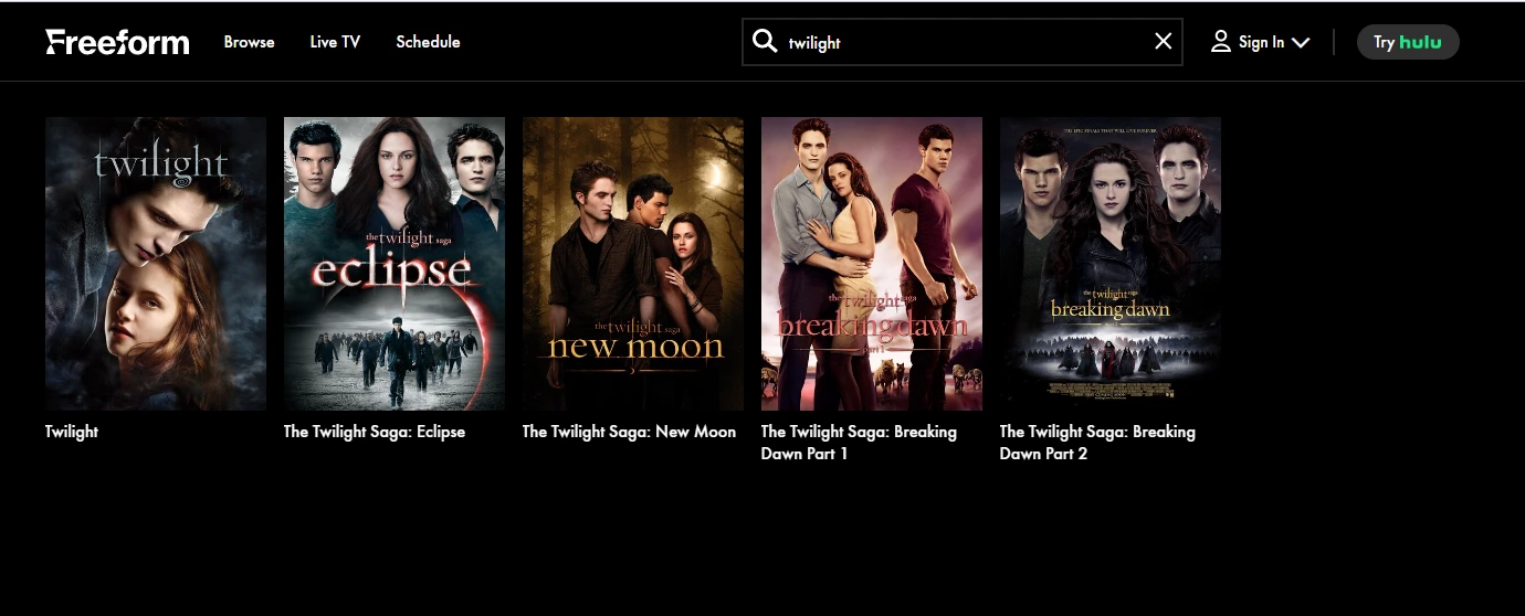 葫蘆是一個可以觀看所有高清品質《暮光之城》電影的好地方。當然,它不是免費的,您需要成為高級用戶才能訪問這些電影。幸運的是,Hulu 的定價非常實惠,其起價為每月 7.99 美元。只需 9.99 美元,您甚至可以將 Duo Hulu 與 Disney + 捆綁在一起。