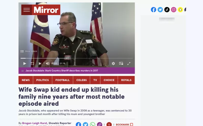 - 這是一個可怕的罪行。當斯托克代爾斯出現在《換妻》節目中時,他們似乎是節目中出現過的最嚴格、最傳統的家庭之一。可悲的是,他們的故事以悲劇告終。 2017 年(出演該劇 9 年後),雅各布·斯托克代爾謀殺了他的母親和兄弟,並隨後試圖自殺。