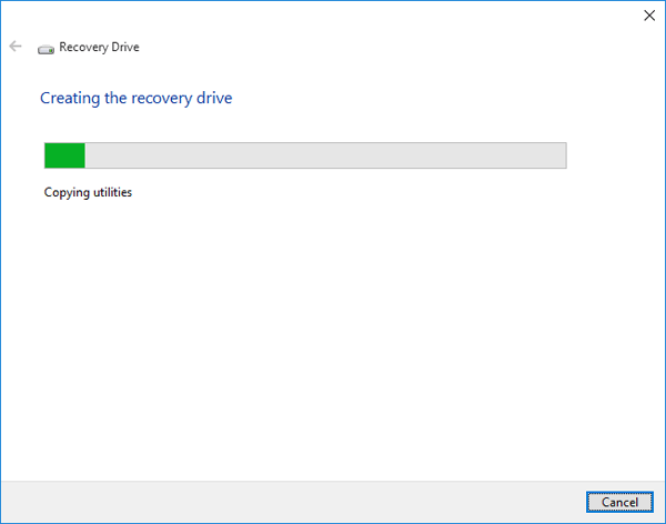 - 如果您要創建基本恢復驅動器,則該過程只需幾分鐘。如果您創建包含系統文件的專用恢復驅動器,則可能需要長達一個小時的時間。