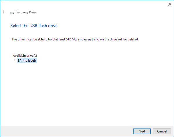 如果您要創建基本恢復驅動器,則可以使用 1GB USB 閃存驅動器。但是,如果您選擇包含系統文件(允許您使用恢復驅動器重新安裝 Windows),則您至少需要一個 16 GB 的 USB 閃存驅動器。請注意,在 32 位版本的 Windows 10 上準備的恢復驅動器不能在 64 位 Windows 10 上使用,反之亦然。