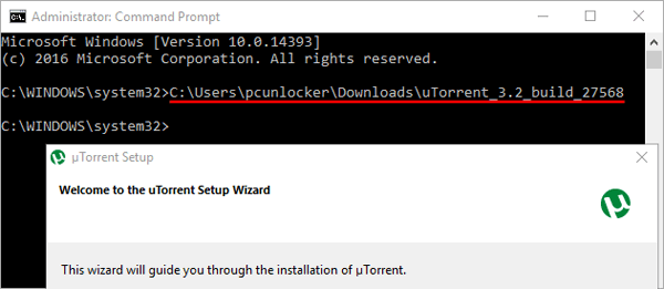- 在命令提示符處,鍵入要安裝的應用程序的完整路徑,然後按 Enter。
