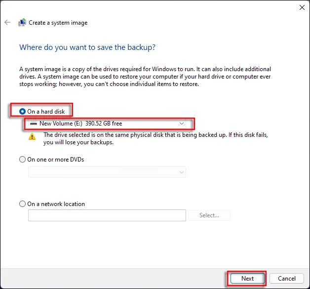 步驟4選擇選項在硬盤上並選擇一個驅動器或分區以保存