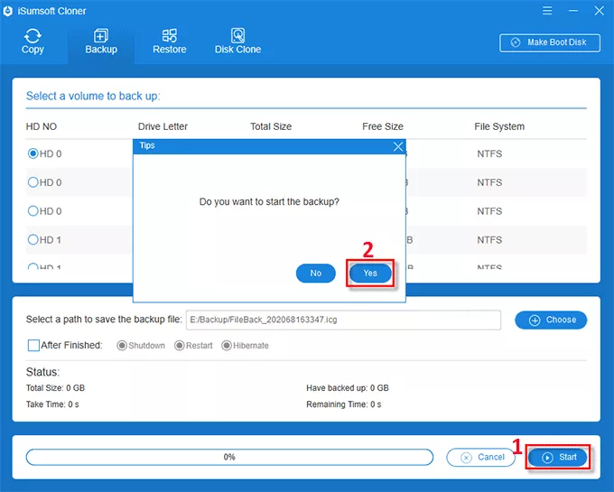 步驟4點擊開始按鈕開始備份並選擇是的確認您的