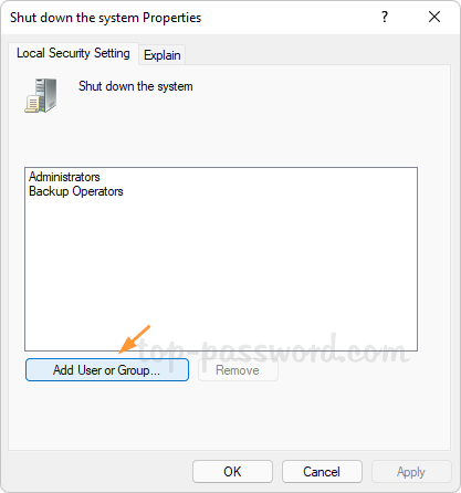 - 單擊“添加用戶或組“ 按鈕。