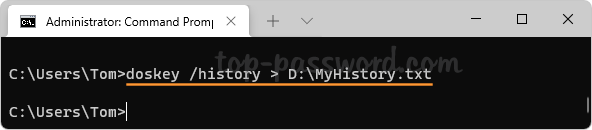 關閉命令提示符窗口後,歷史記錄將被永久刪除。在關閉之前,可以使用以下命令保存命令歷史記錄: