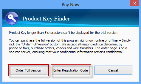 注意:由於Windows 8.1產品密鑰為25個字符,而iSoft產品密鑰查找器的免費試用版僅支持查找不超過5個字符的產品密鑰,因此它只會顯示Windows 8.1產品密鑰的前5個字符。為了獲得其恢復任意長度產品密鑰的強大功能,只需註冊它或訂購完整版本即可。